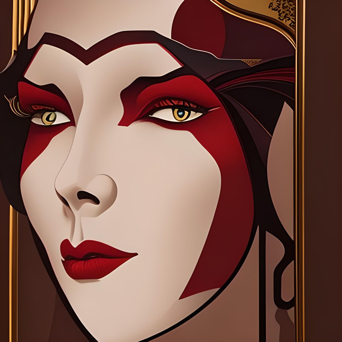 This image shows a striking, darkly lit depiction of a powerful female figure, blending elements of anime and realistic styles with a hint of surrealism.