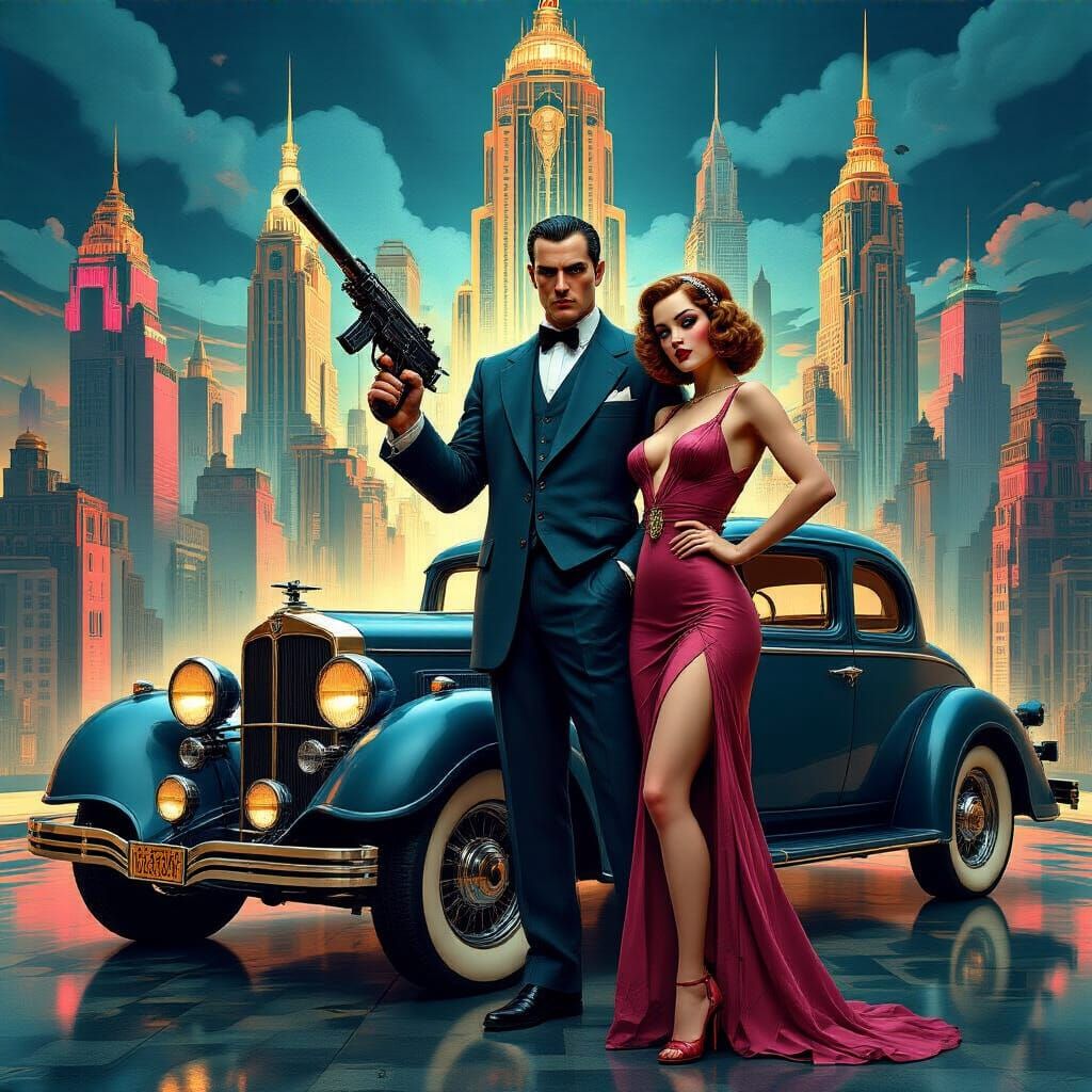 Generate stunning, detailed Art Deco scenes with gangsters, vintage fashion, and more. It's free and easy!