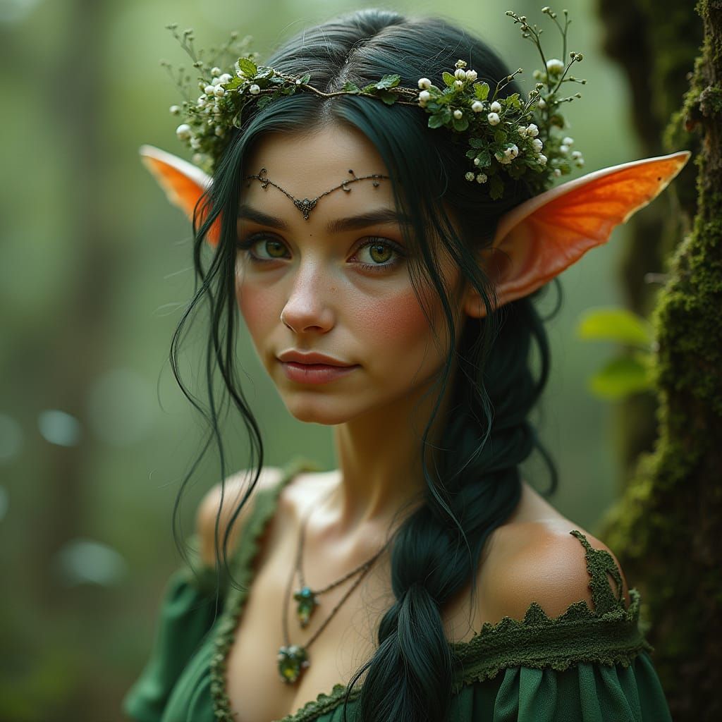 This image depicts a whimsical elvish fairy resembling Mrs. Edelweiss. The artwork evokes a sense of fantasy and natural beauty.