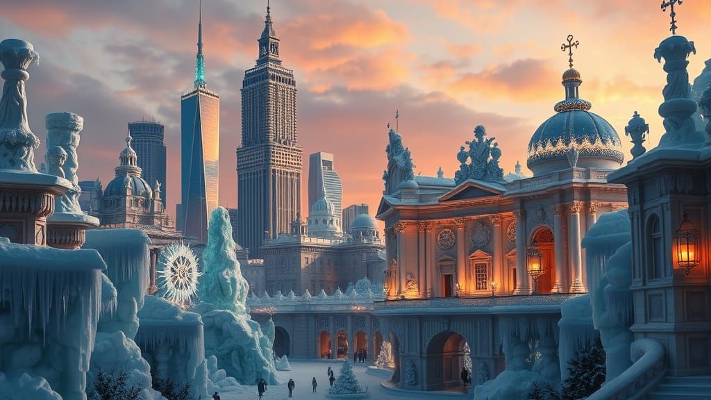 Create your own stunning baroque cityscapes with ice and dramatic lighting using our free AI image generator!