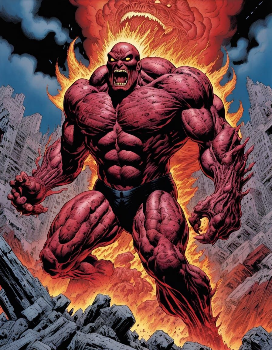 This image depicts a nightmarish scene of a man invaded by a fiery, parasitic force, as crimson chaos erupts from within, rendered in a lyrical abstract style with charcoal and digital flames, in a dark, dystopian aesthetic.