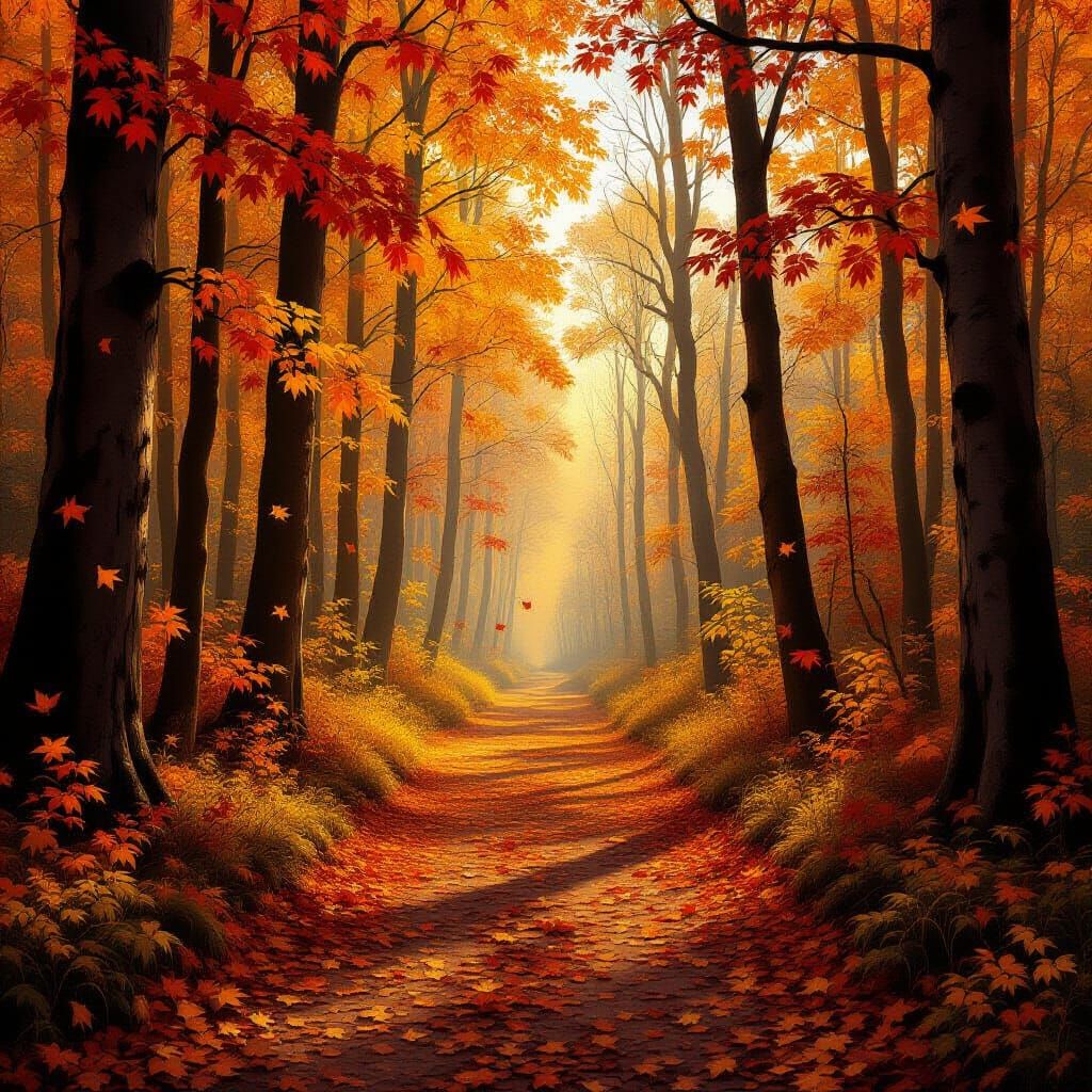 Generate your own realistic autumn forest scenes with warm leaves and soft sunlight. Free and easy AI image creation.