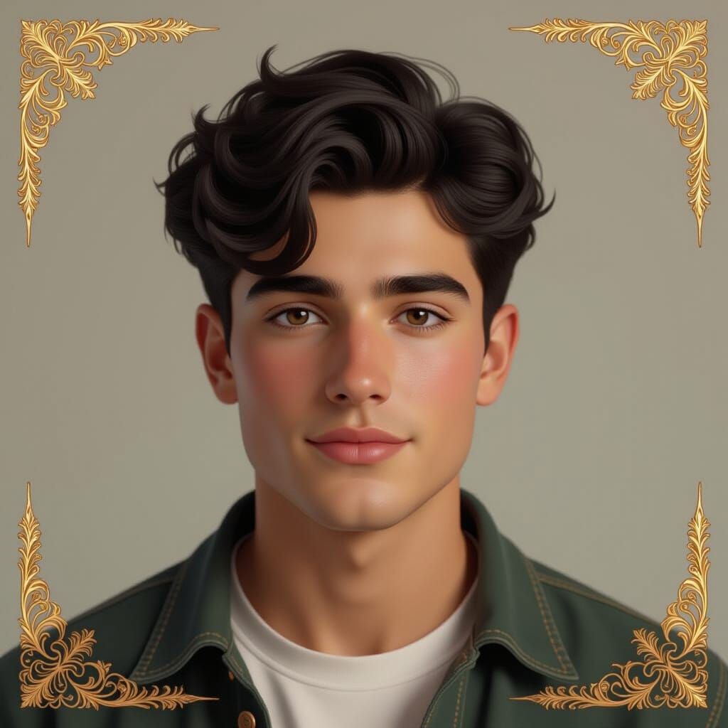 A hyper-realistic portrait of a heavyset young man with black hair and olive complexion, showcasing dynamic lighting and ornate details. Rendered with advanced graphics.