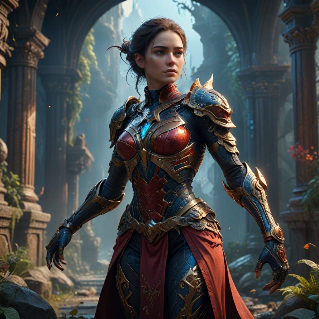 This image is a detailed matte painting with deep, complementary colors, created in a fantasy concept art style with 8k resolution.