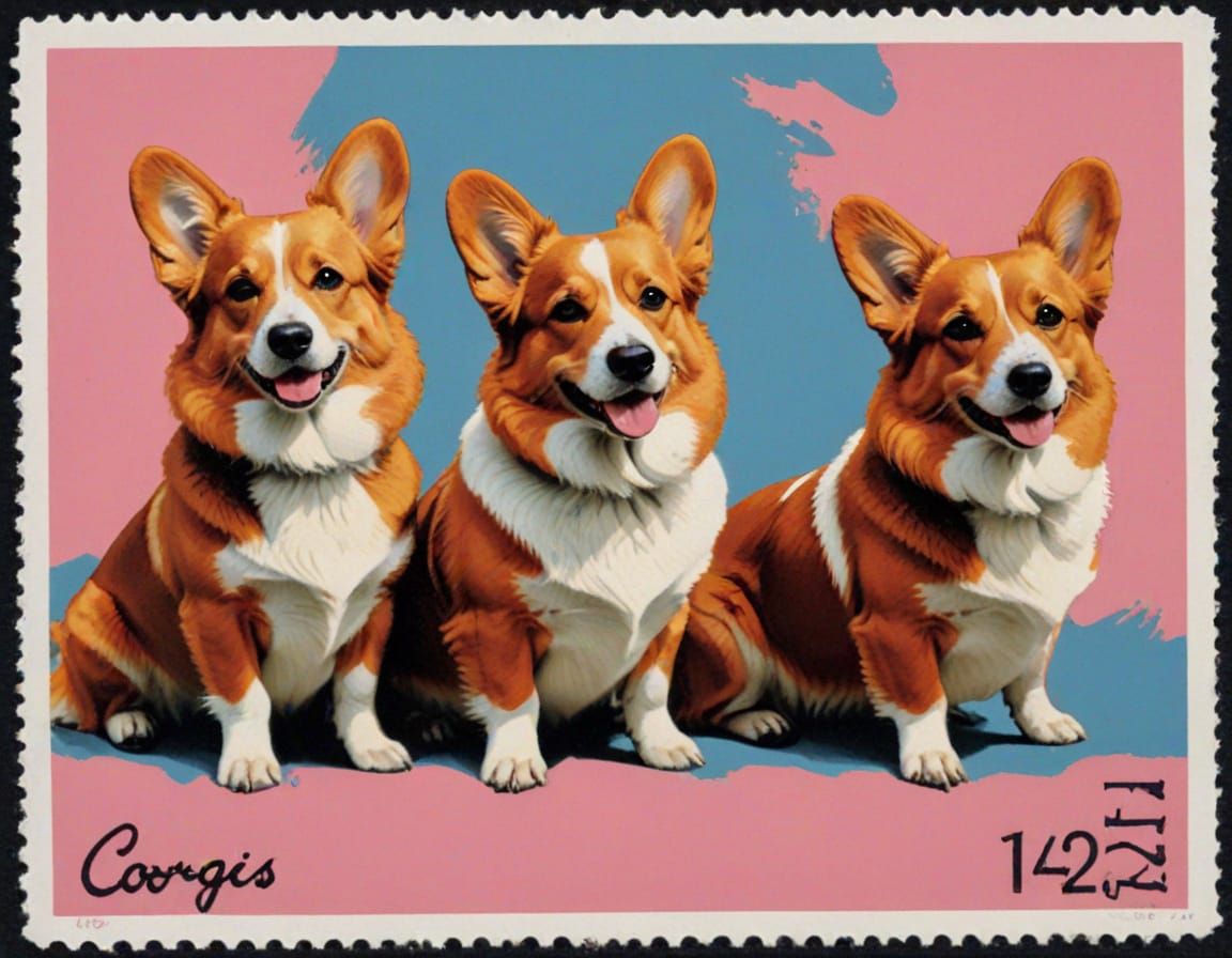 postage stamp style Corgi's