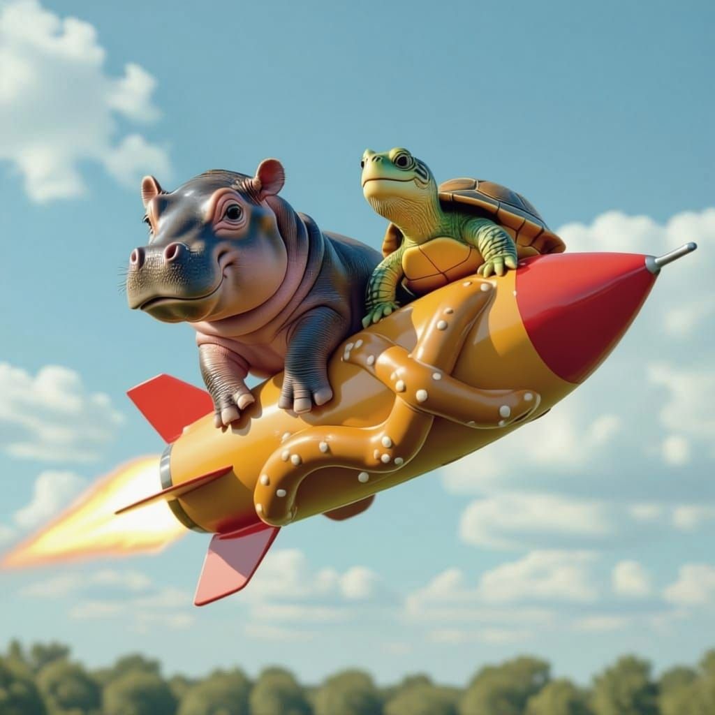 Easily create your own images of baby hippos, turtles, and pretzel rockets with our free AI generator.