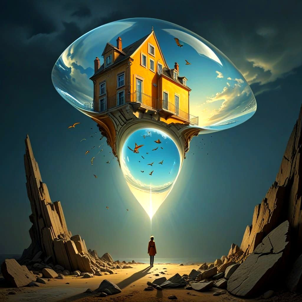 beautiful fantastic dynamic surreal otherworldly scene, high quality photorealistic digital illustration, fantasy concept art, mystical realism, refraction, recursion, fractality, optical illusion, trompe l'oeil, dynamic, expressive, intense, evocative, liminal, nostalgic, compelling, captivating, phantasmic, ...