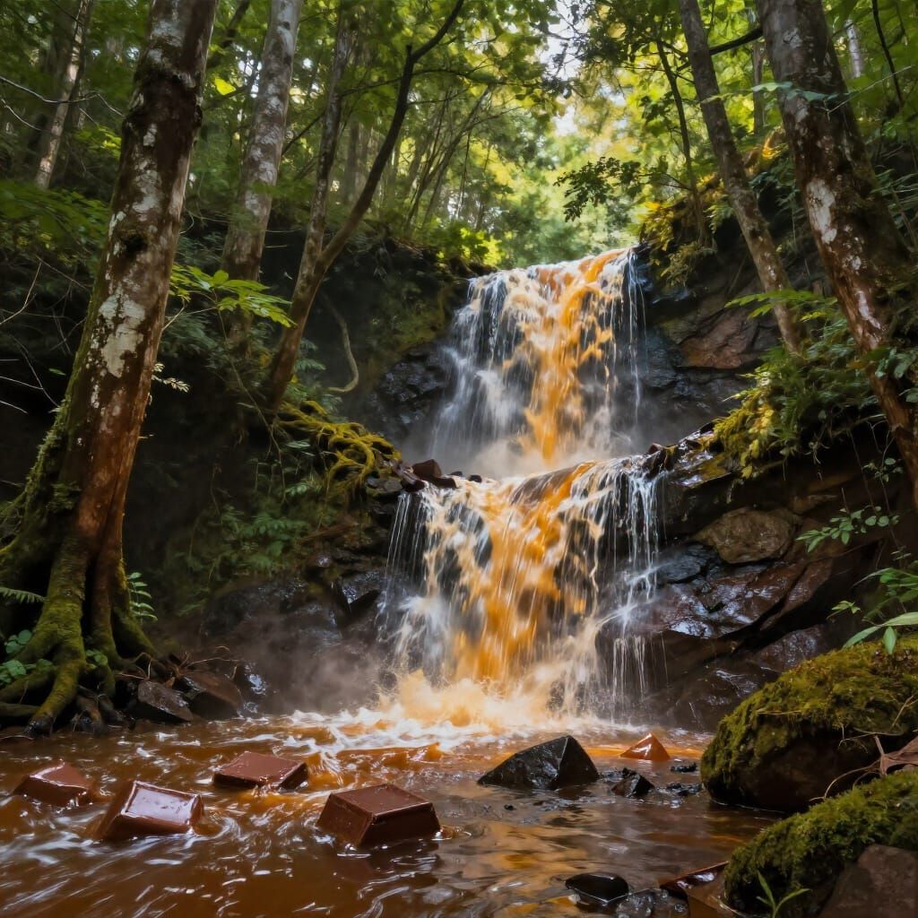 Create your own stunning chocolate and caramel waterfall images with our free AI generator. Easy and fun!