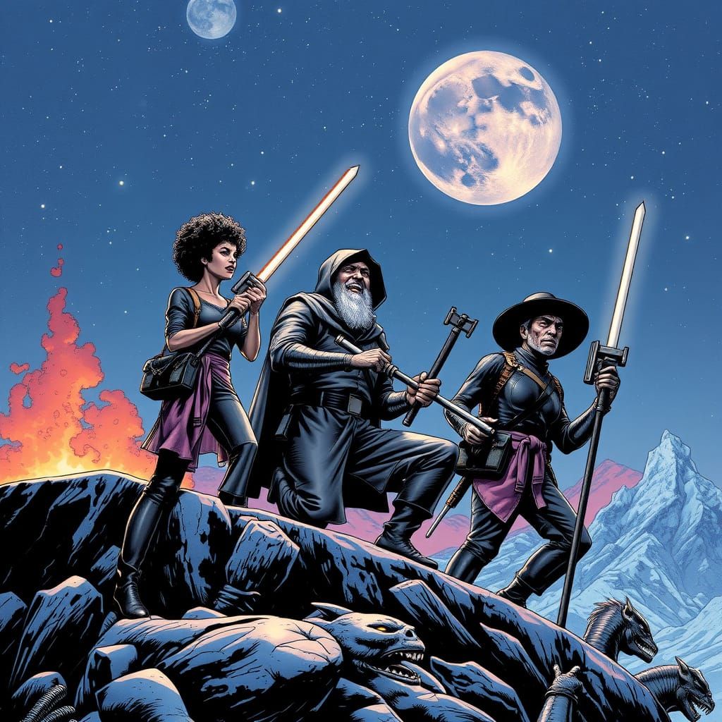 This image showcases the distinctive art styles of several illustrators. It blends elements of comic book art with manga influences and detailed character designs.