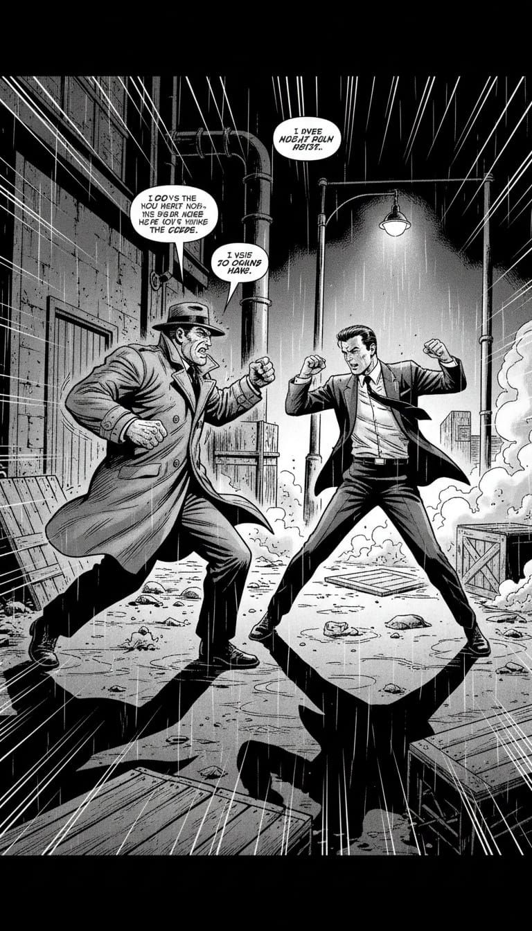 Generate dynamic noir fight scenes with our free AI tool. Easy, fast, and perfect for your comic or story.
