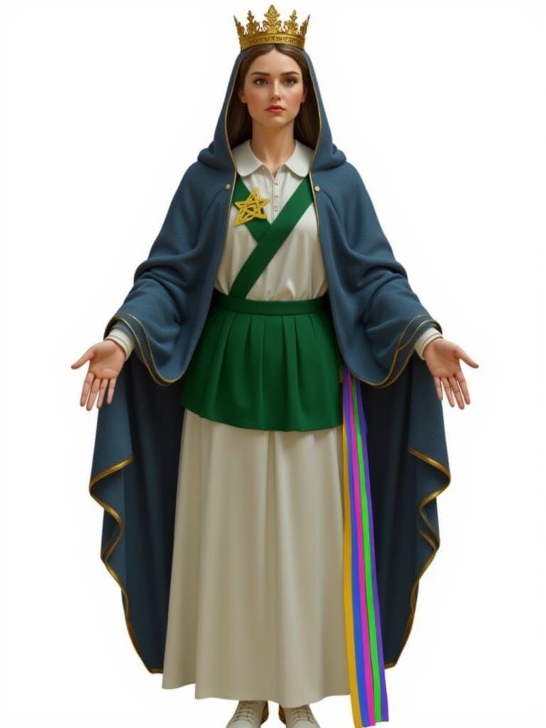 This image shows a serene and symbolic scene of a woman's foot adorned with a delicate golden crown, set against a blurred green background with a stylized Star of David shining softly nearby, rendered in a photorealistic style with meticulous attention to textures and lighting.