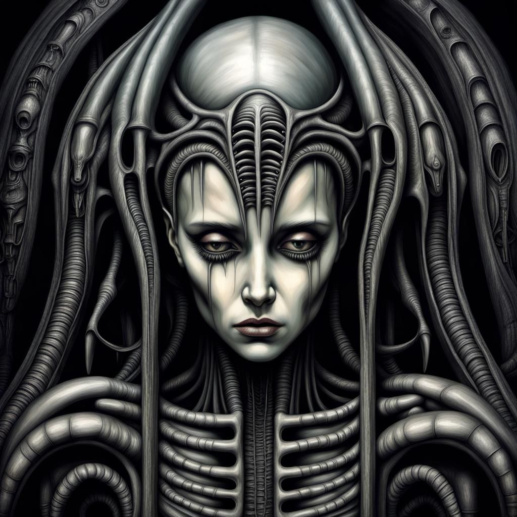 This image shows a visual representation of deep sorrow and anguish. The artwork evokes feelings of despair and melancholy in a bio-mechanical style.