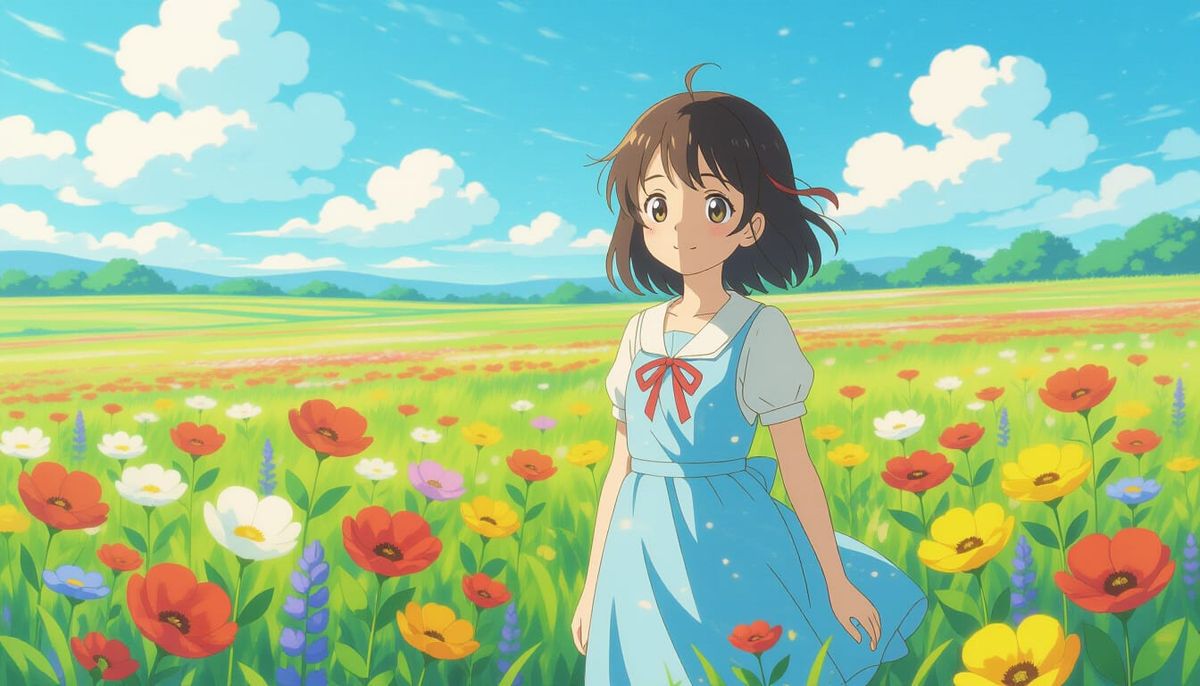 Easily generate your own whimsical anime girls on flower fields with our free AI image generator. Customize their cute dresses and more!