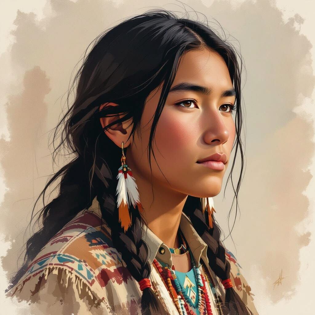 This image features a 16-year-old Navajo Two-Spirit boy with a husky build, depicted with serene dignity. Rendered in a stylized digital art style with an earthy color palette.