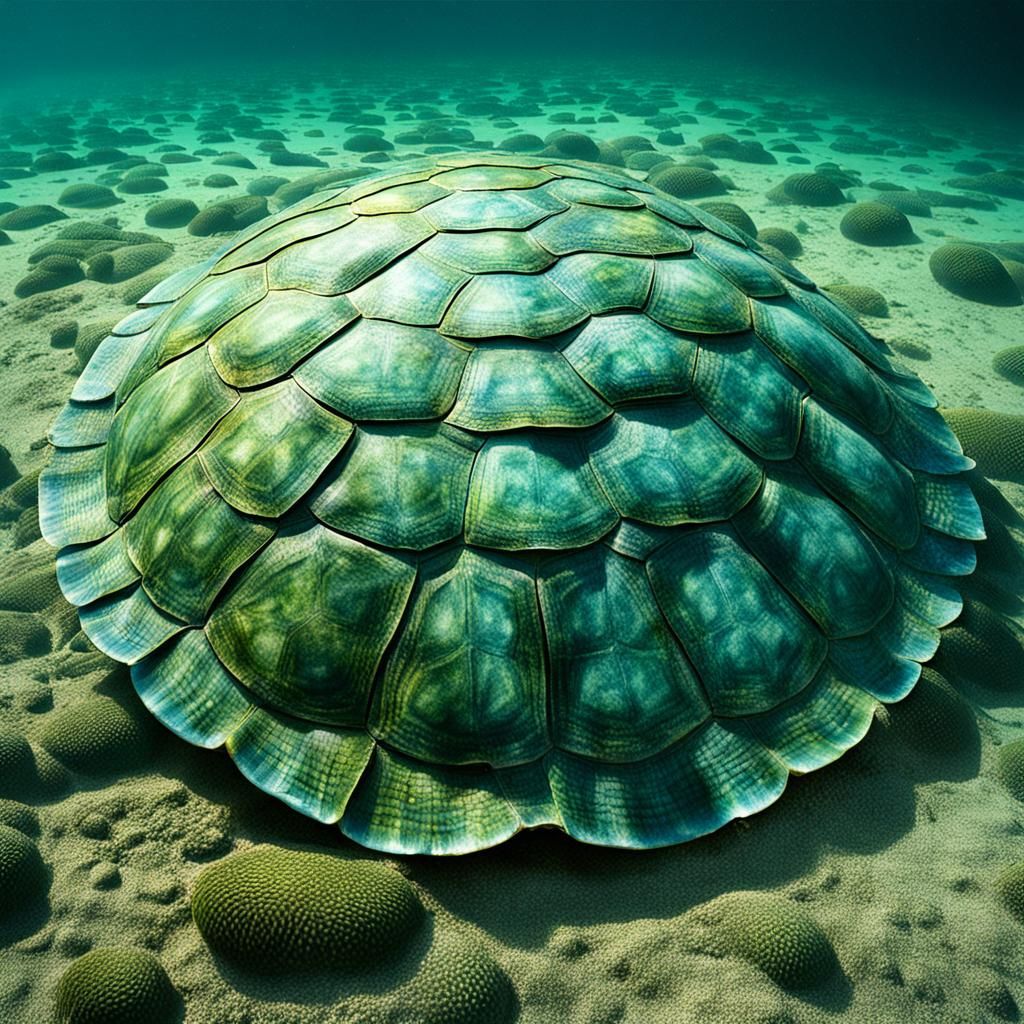 This image shows soldiers sheltered by a giant sea turtle shell during warfare. The scene depicts a blend of natural defense and military strategy.