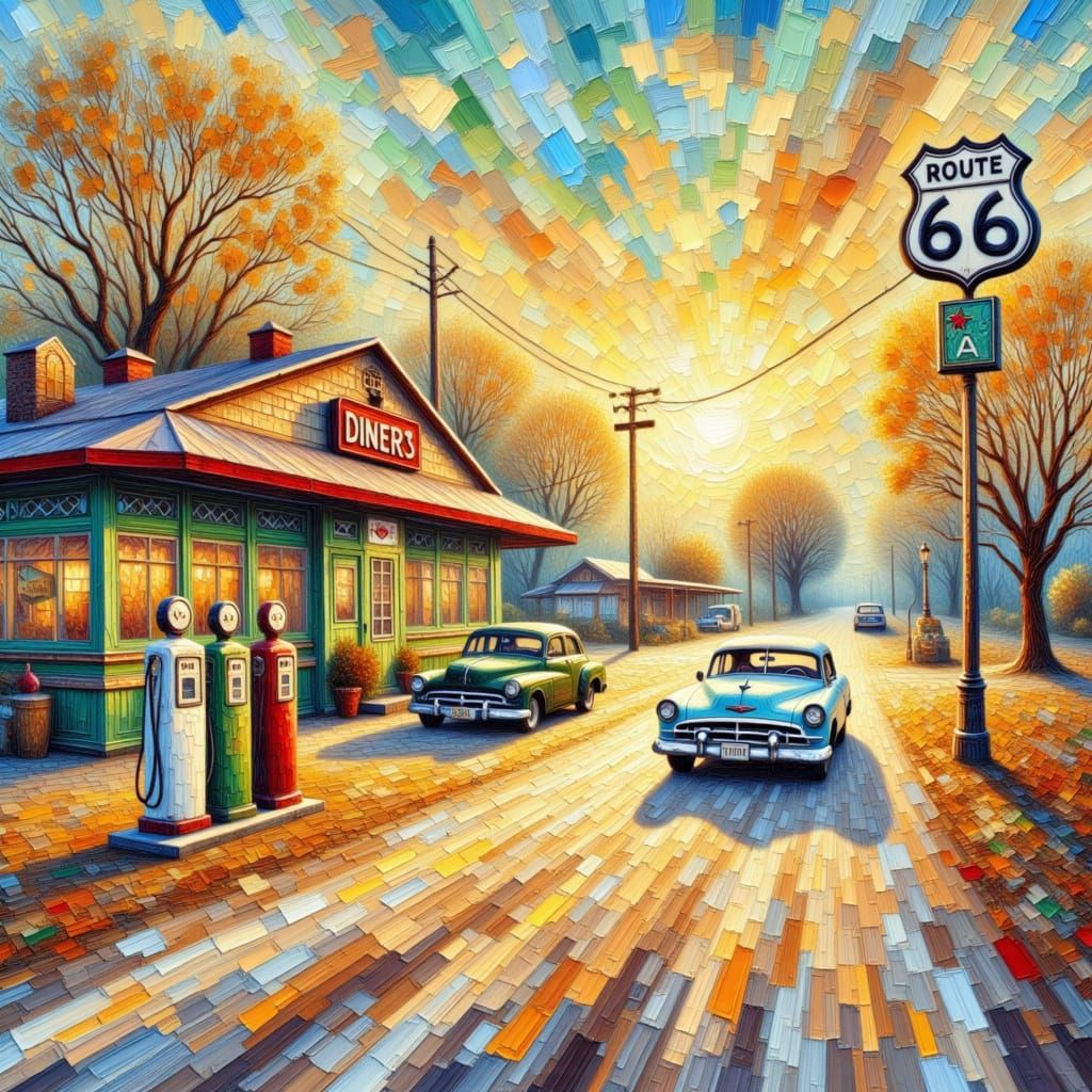 Easily generate your own AI images of classic diners and Route 66 scenes. It's free and simple!