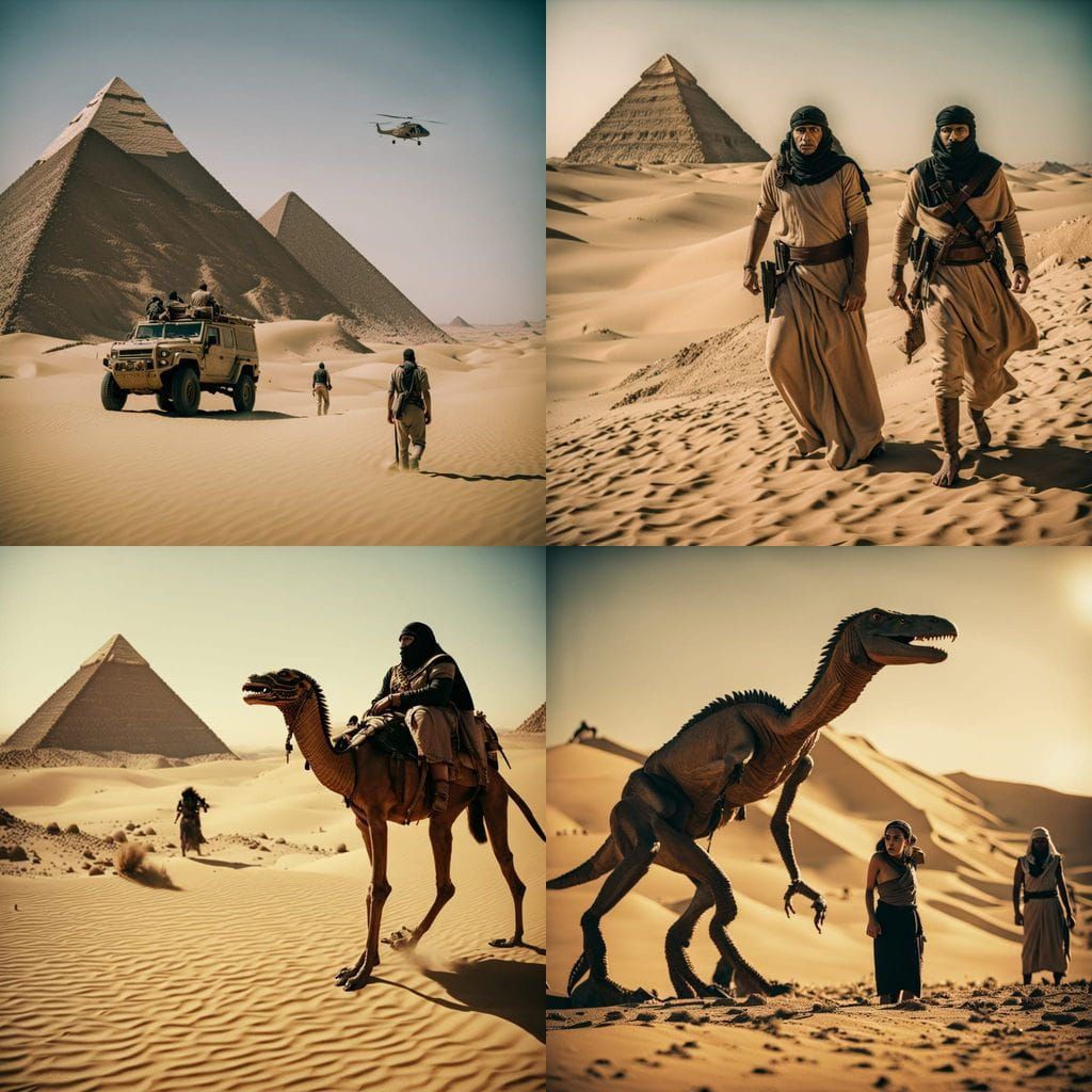 This image shows the Hyksos armies seizing and pillaging Egypt. It is a cinematic film still with film grain, vignette, and atmospheric lighting. The scene is post-processed and color graded.