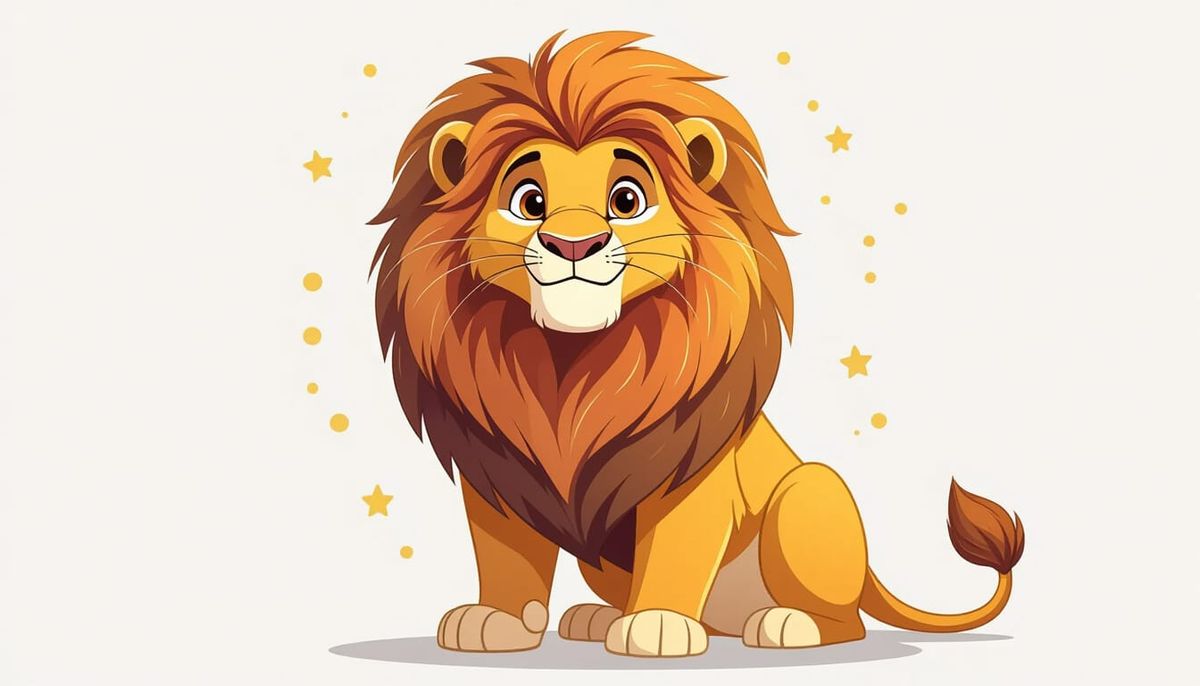 A regal cartoon lion with a golden coat sits proudly. Rendered as a vibrant watercolor vector illustration with soft gradients, the friendly character is isolated on a clean white background.