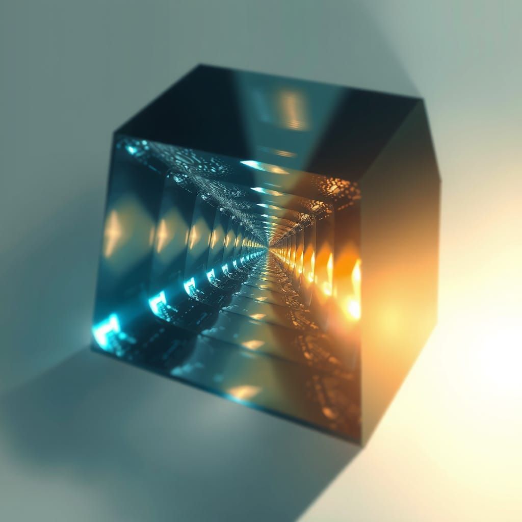 This image depicts a woman existing in a realm where time and space are fluid. She is surrounded by impossible objects and radiant light, blurring the lines between reality and the fourth dimension.
