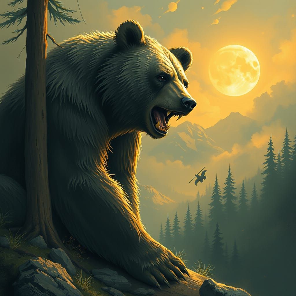 Easily generate your own hypermassive bear images with our free AI image generator, perfect for fantasy art and more.