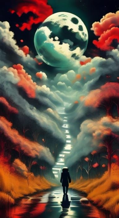 This image features an intricate Arabesque design with a dark, whimsical aesthetic. The composition evokes a sunken, submerged feel, presented in a unique double exposure effect.