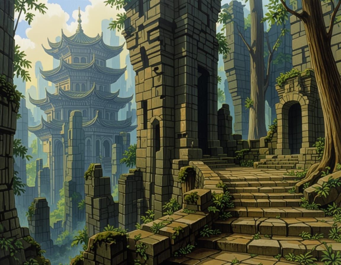 Create your own temple ruins in a forest setting with our free AI image generator. It's easy!