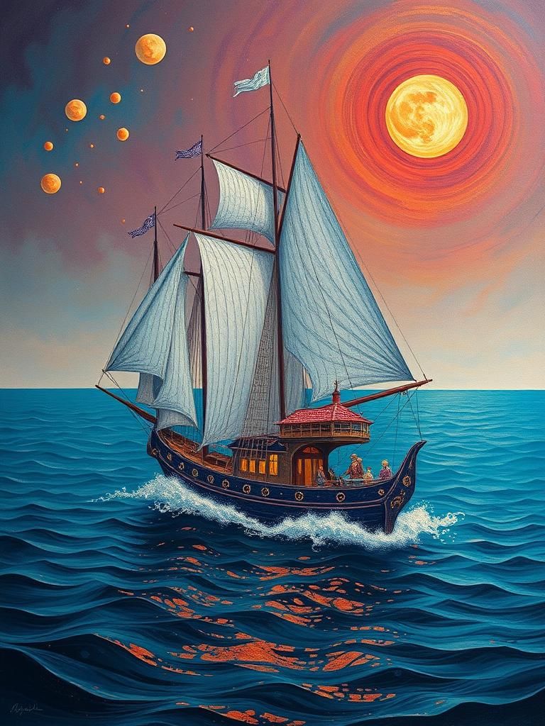 dancing neurons in the virgin mothership sailing home in immaculatism by artist "Joseph Stella" by artist "Francis Criss" by artist "skyfartcore" deeply hued sea background by artist "deep sculptural textual shadows" by artist "textile origami" by photographer "Paul Strand" intelligent expressive eyes ...