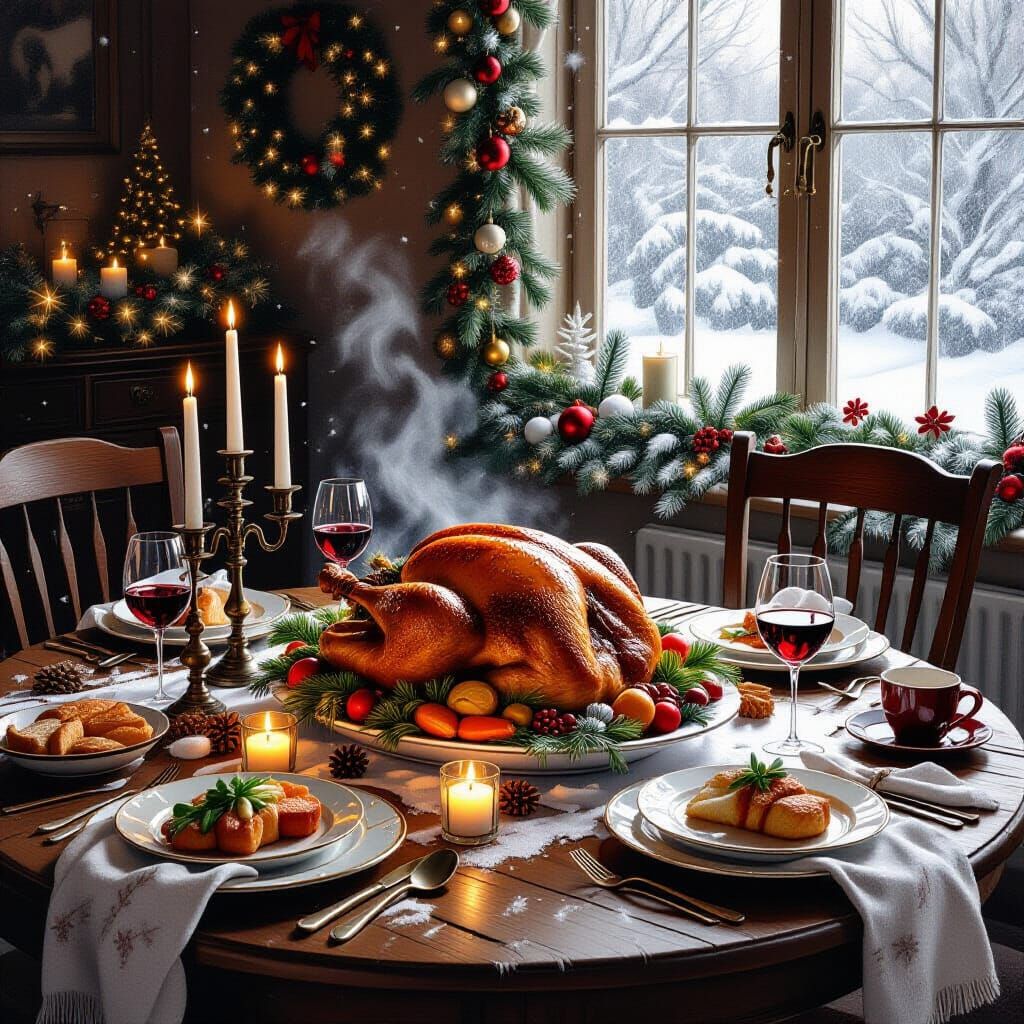 Generate festive Christmas dinner scenes with our free and easy AI image creator. Perfect for holiday inspiration!