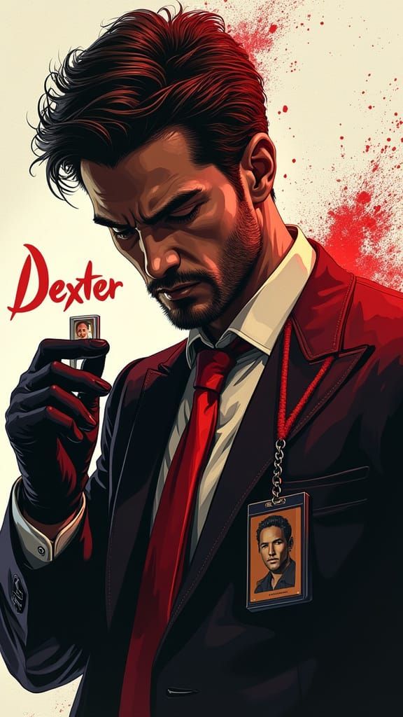 A striking picture of a man studying a slide in a noir style. The scene is reminiscent of a graphic novel, with dramatic shadows and crimson patterns that evoke urban grit.