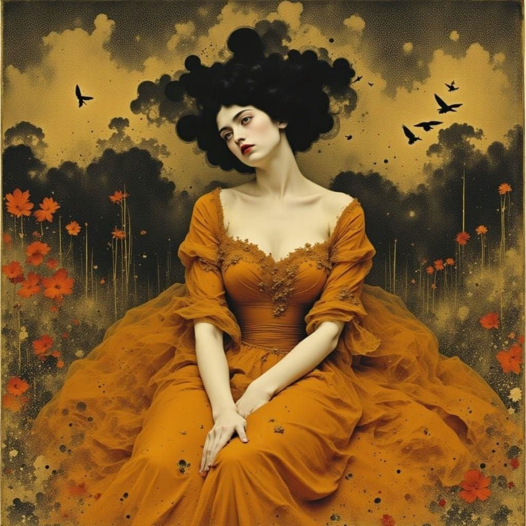 I love the way her inky hair is one with the sky. She is also gorgeous and I'm sorry she is feeling jaded. 🧡🖤🧡