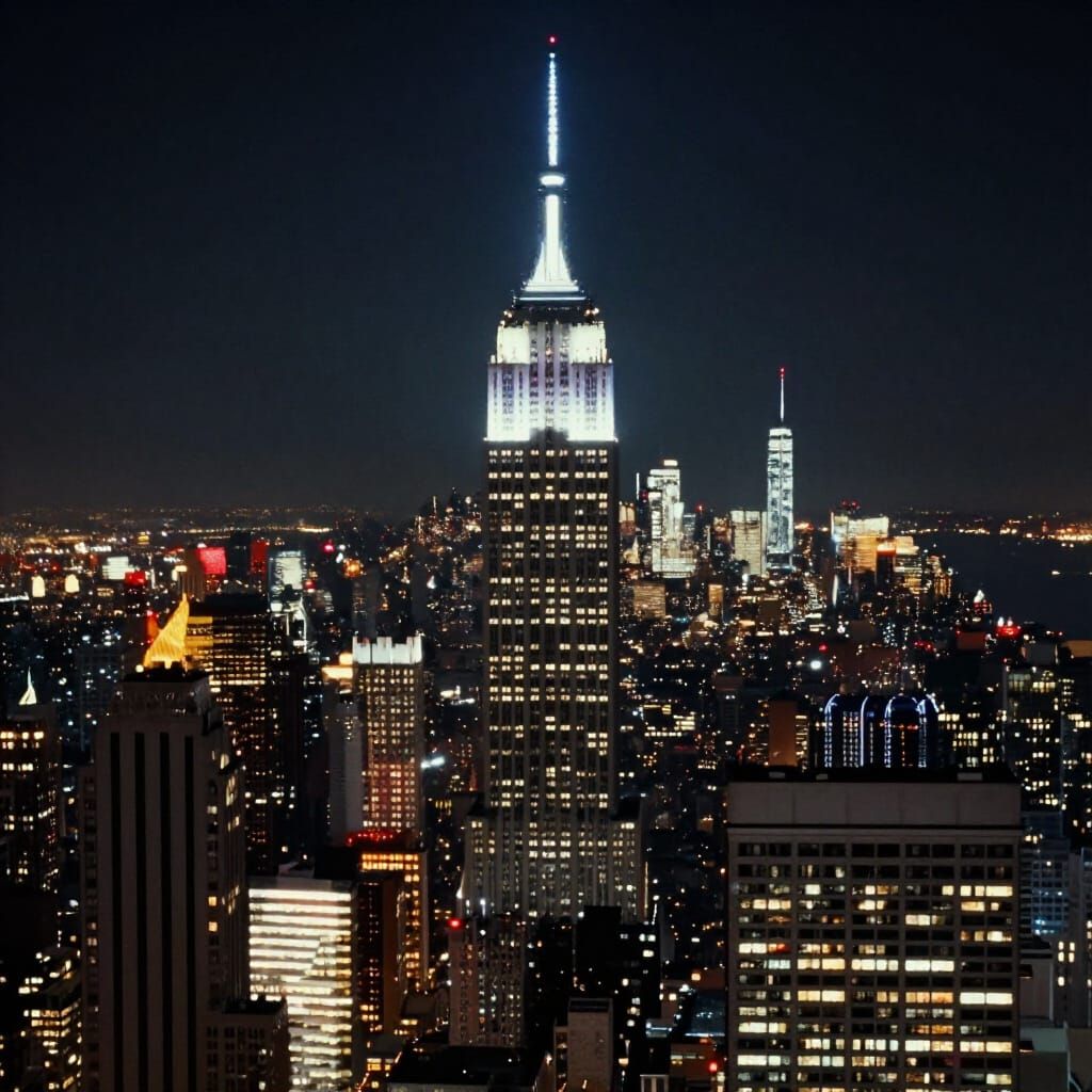Generate your own stunning images of the Empire State Building at night, inspired by historical views. Free and easy AI creation.