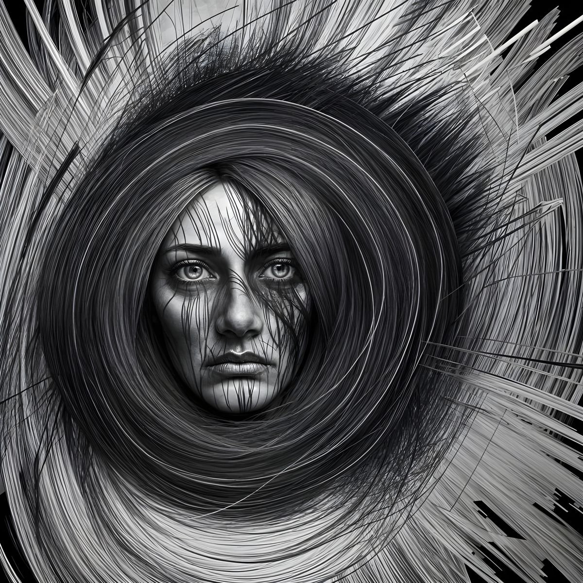 This image is a pencil drawing depicting the concept of inner turmoil as a mirror for others to read. The artwork captures complex emotions through detailed linework.