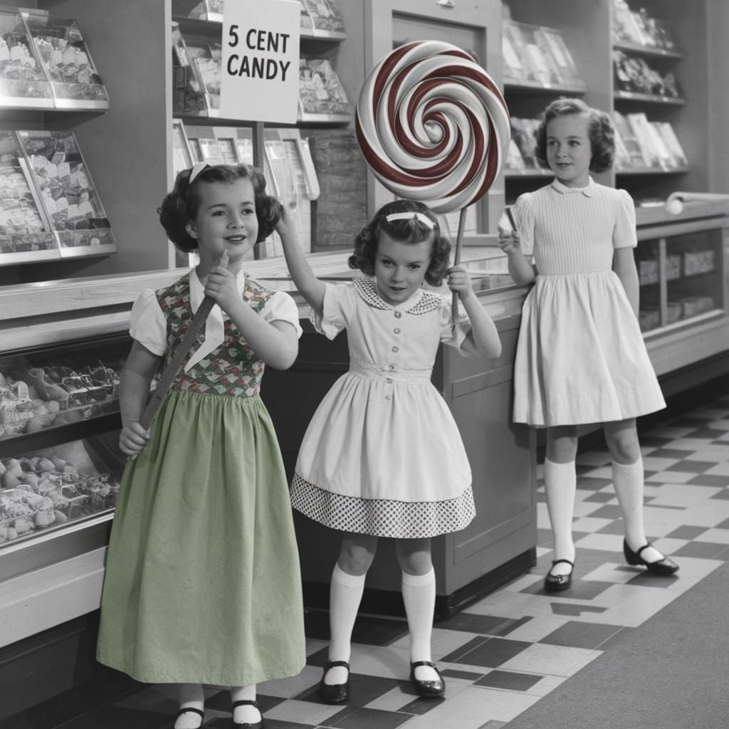Easily generate your own vintage 1950s candy store images. Free, fun, and flexible AI image creation.