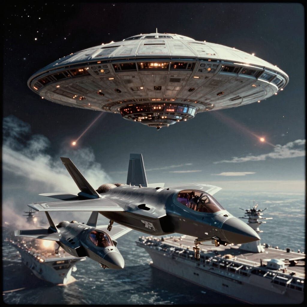 Generate your own epic F35 dogfight and UFO battle images. Free and easy AI image creation.