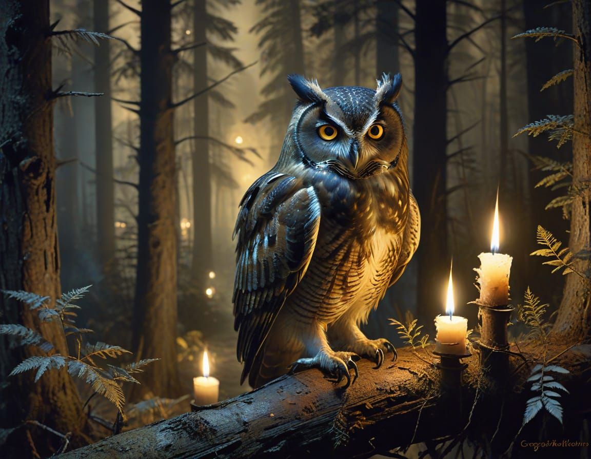 Create your own romantic and enigmatic owl portraits in a candlelit forest. It's free and easy with our AI image generator!