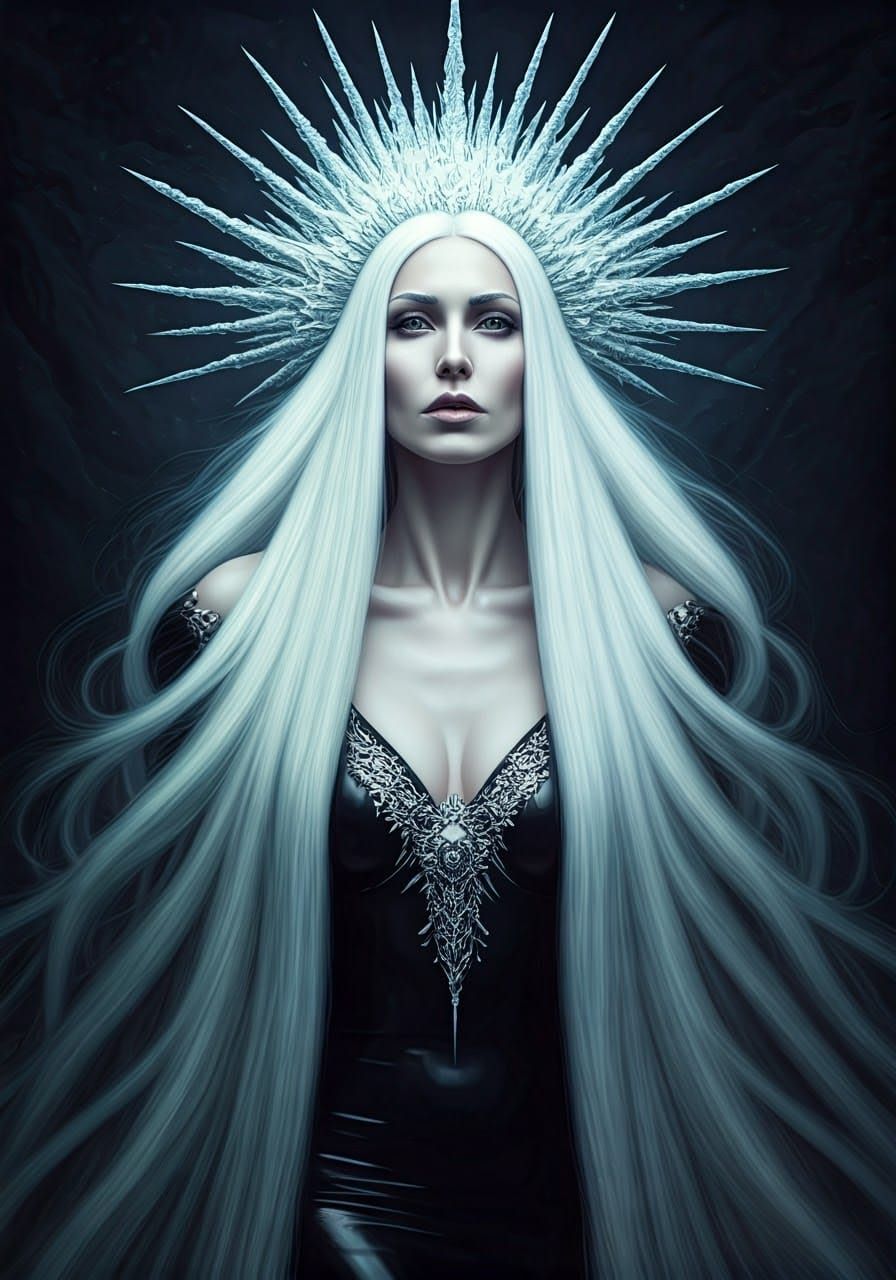 Easily create your own ice queen characters with our free AI image generator, featuring latex wear and long hair