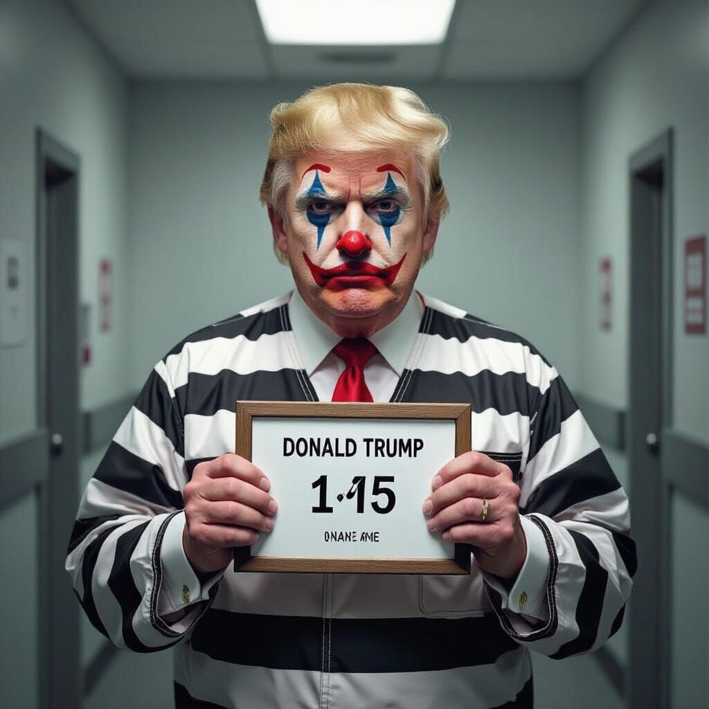 Easily generate your own unique clown Trump mugshot images for free with our AI generator.