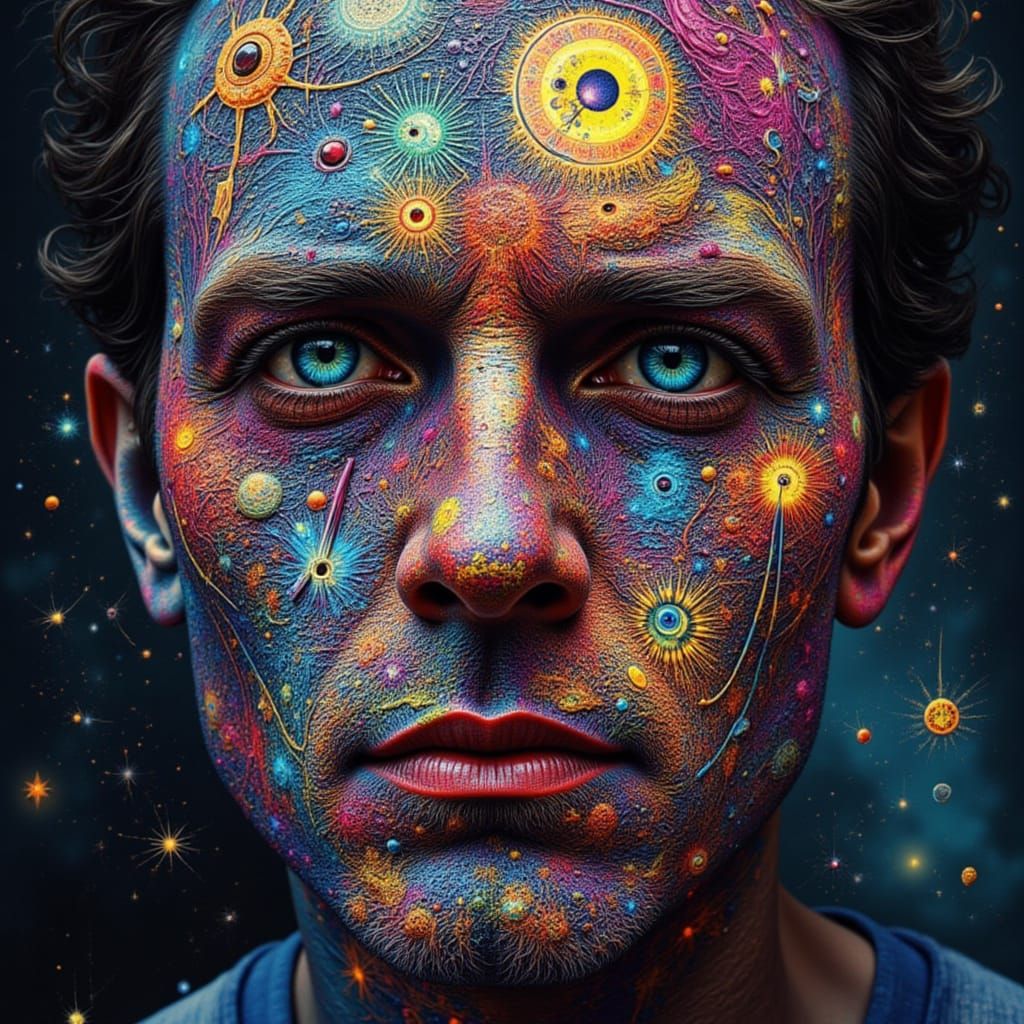 This image presents a surreal head illusion, where hidden faces and figures emerge from intricate patterns, reminiscent of Magic Eye posters and architectural detail.