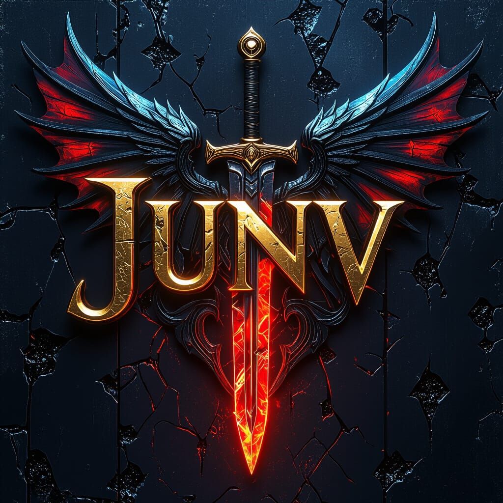 A striking emblem for a gaming brand featuring metallic letters with integrated dragon wings and sword elements. The logo is embossed with battle-worn textures and a glowing aura in a cinematic fantasy style.