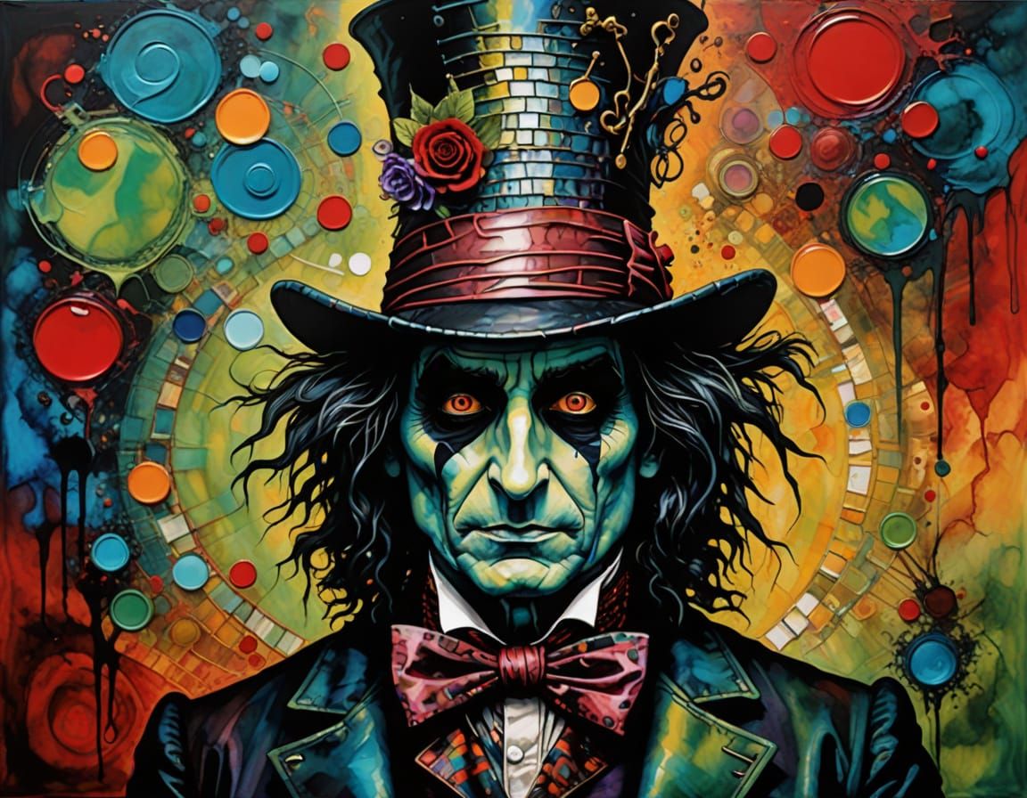 Very colorful, at first I was thinking he's Alice Cooper, I love the splashy drips and color blending. Thanks for playing! ๐