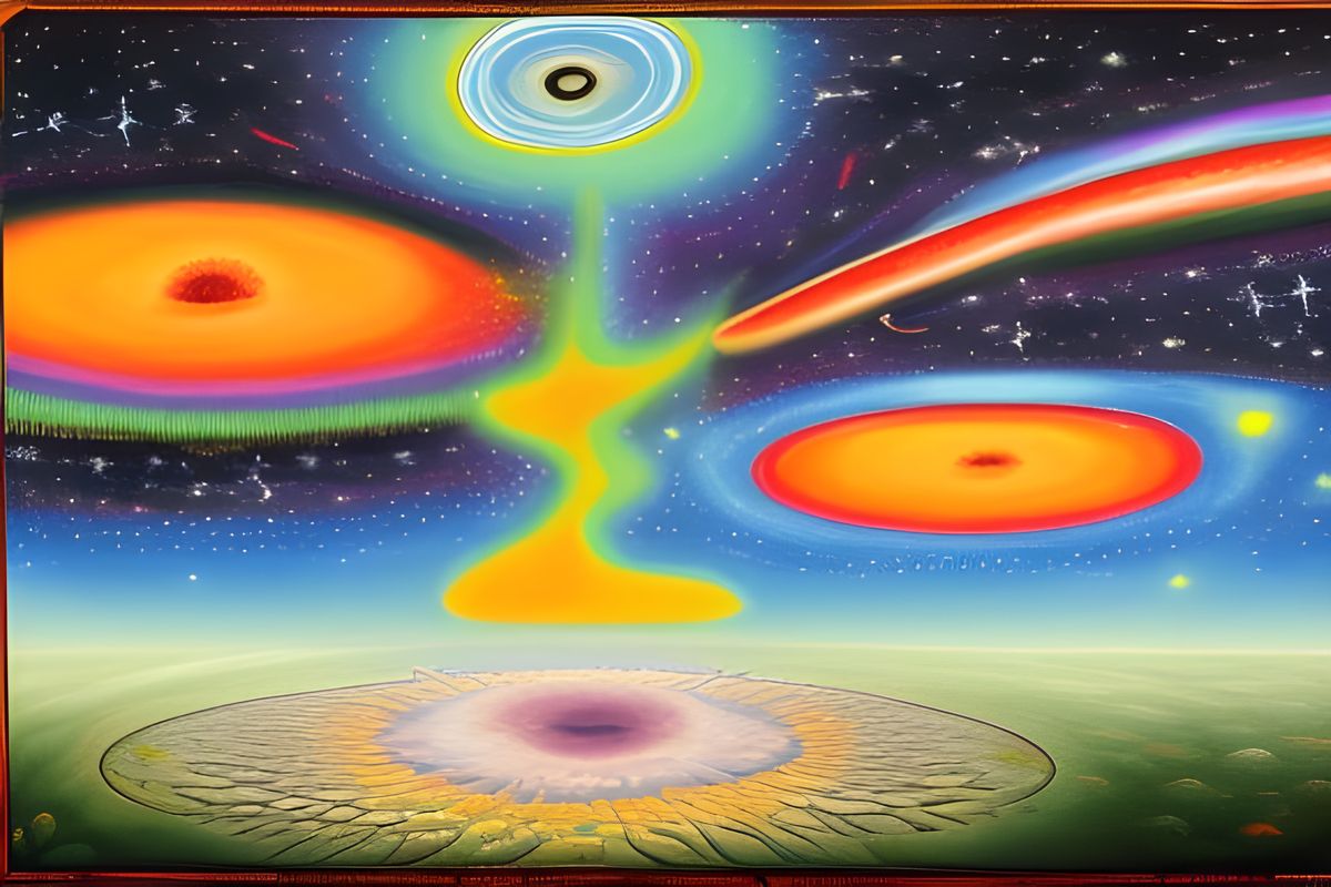 A surreal painting depicting a humorous take on the meaning of life. The artwork blends fantasy and supernatural elements in a hyperdetailed and hyperbolic style.