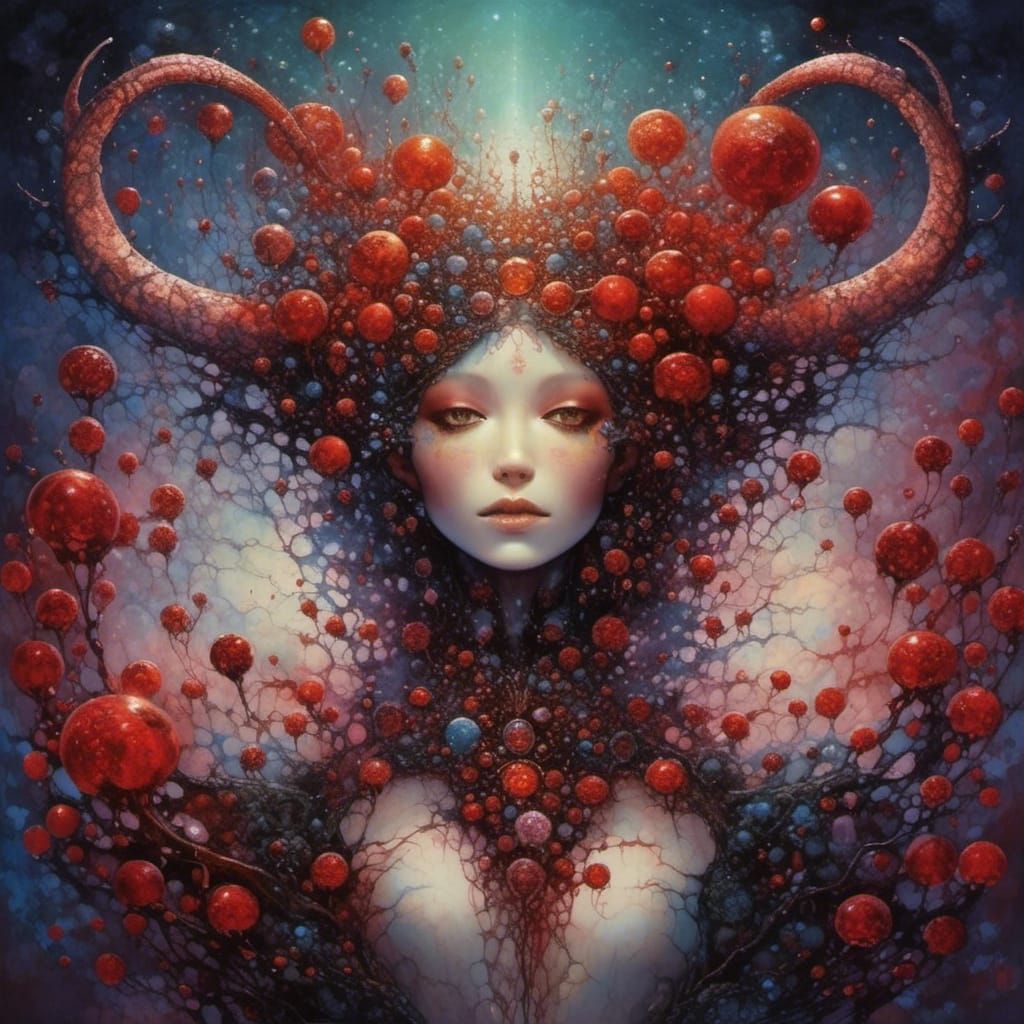 A digital rendering of adorable baby robots with a killer instinct. The image features alcohol ink and oil paint textures, high contrast, and deep saturation for a magical and ethereal feel.