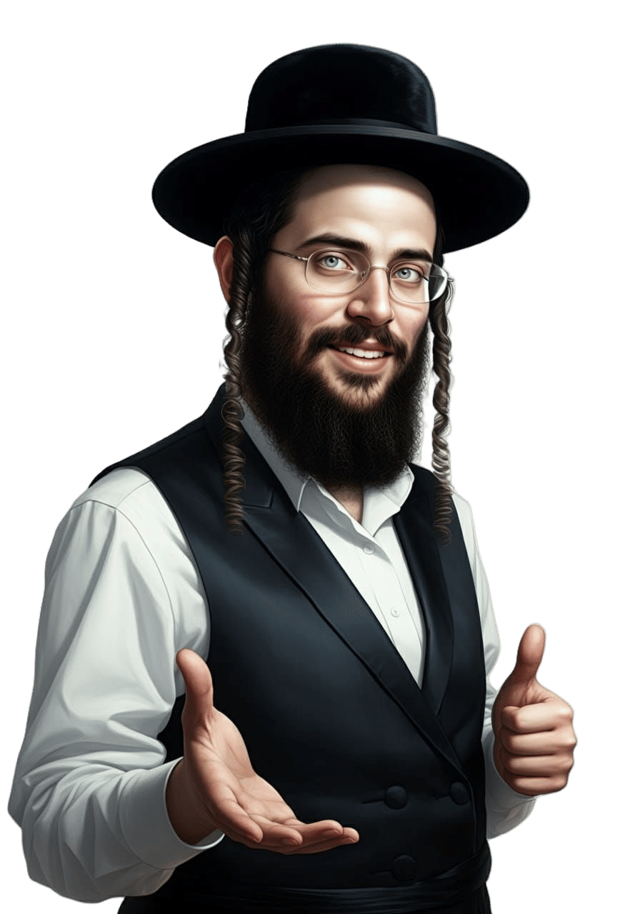 This digital illustration features a Hasidic man with a warm smile, inviting you to enter. His comic-inspired design blends clean lines with realistic digital art, set against a crisp white background.