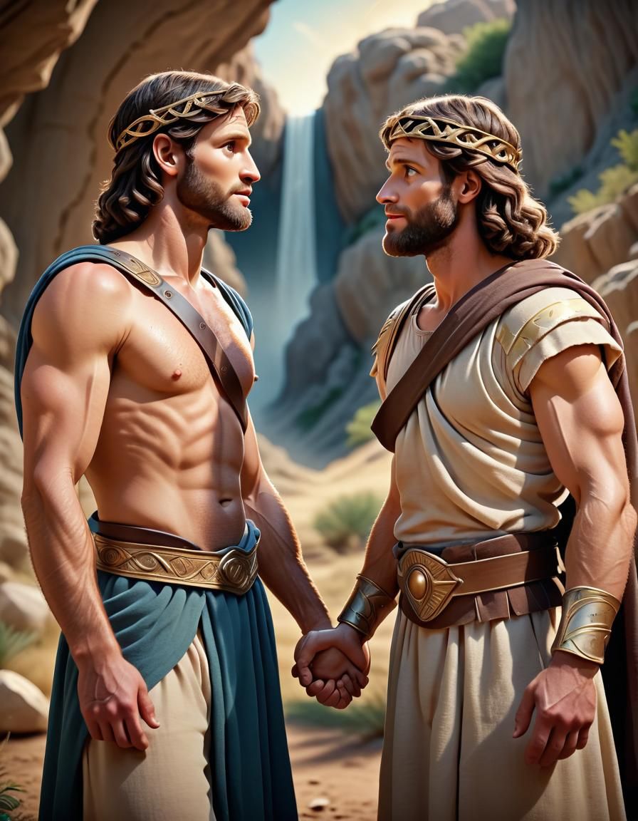 Easily create your own biblical stories with our free AI image generator. Generate stunning images of famous couples, heroes, and moments from the Bible.