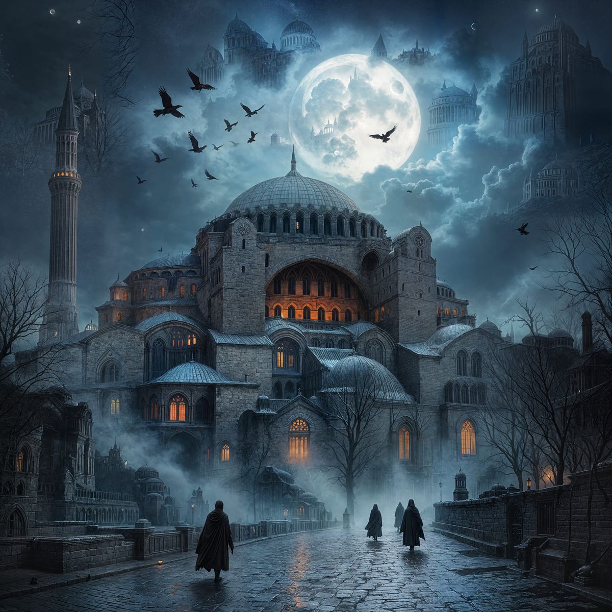 Generate your own eerie, gothic Hagia Sophia illustrations at night. Free and easy AI art creation.