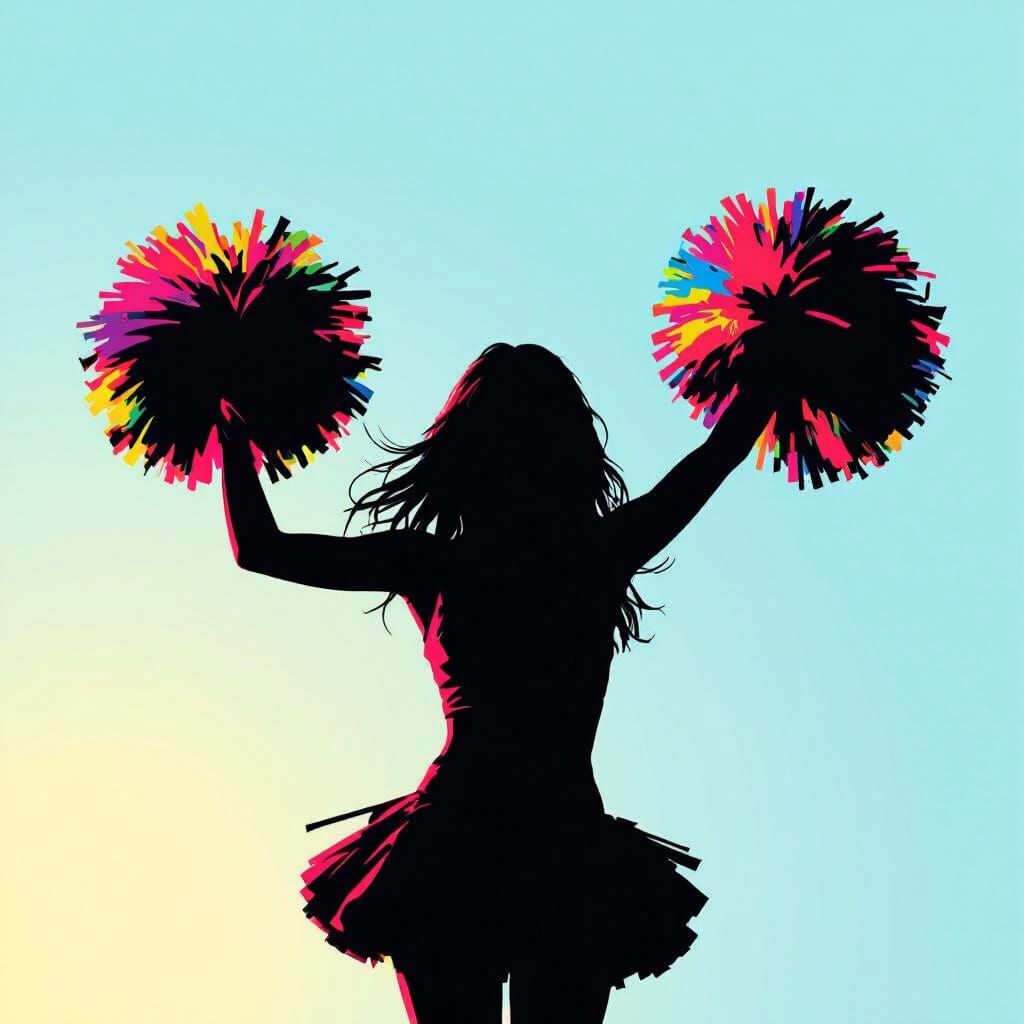A vibrant pop art image of a cheerleader silhouette with pompoms set against a gradient backdrop. The artwork captures the essence of bold, graphic designs.