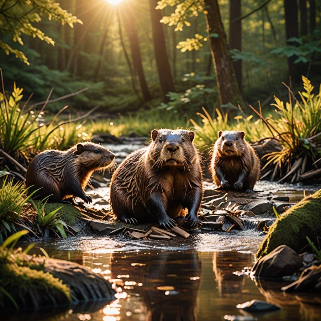Generate realistic images of beaver families building dams, for free, with our AI image generator.