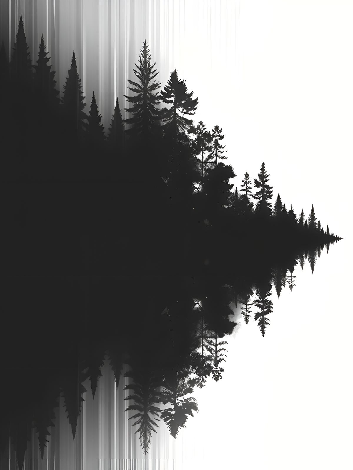 This AI-generated image presents an abstract, conceptual forest silhouette. It features vertical layers and evolving textures, creating a visually striking and somewhat corrupted aesthetic.
