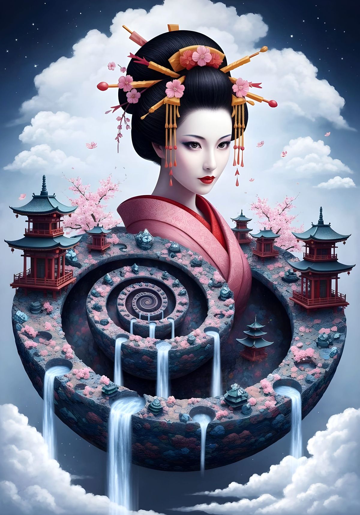 Design your own unique geisha images, blending tradition with cosmic spirals. Free and easy to use!