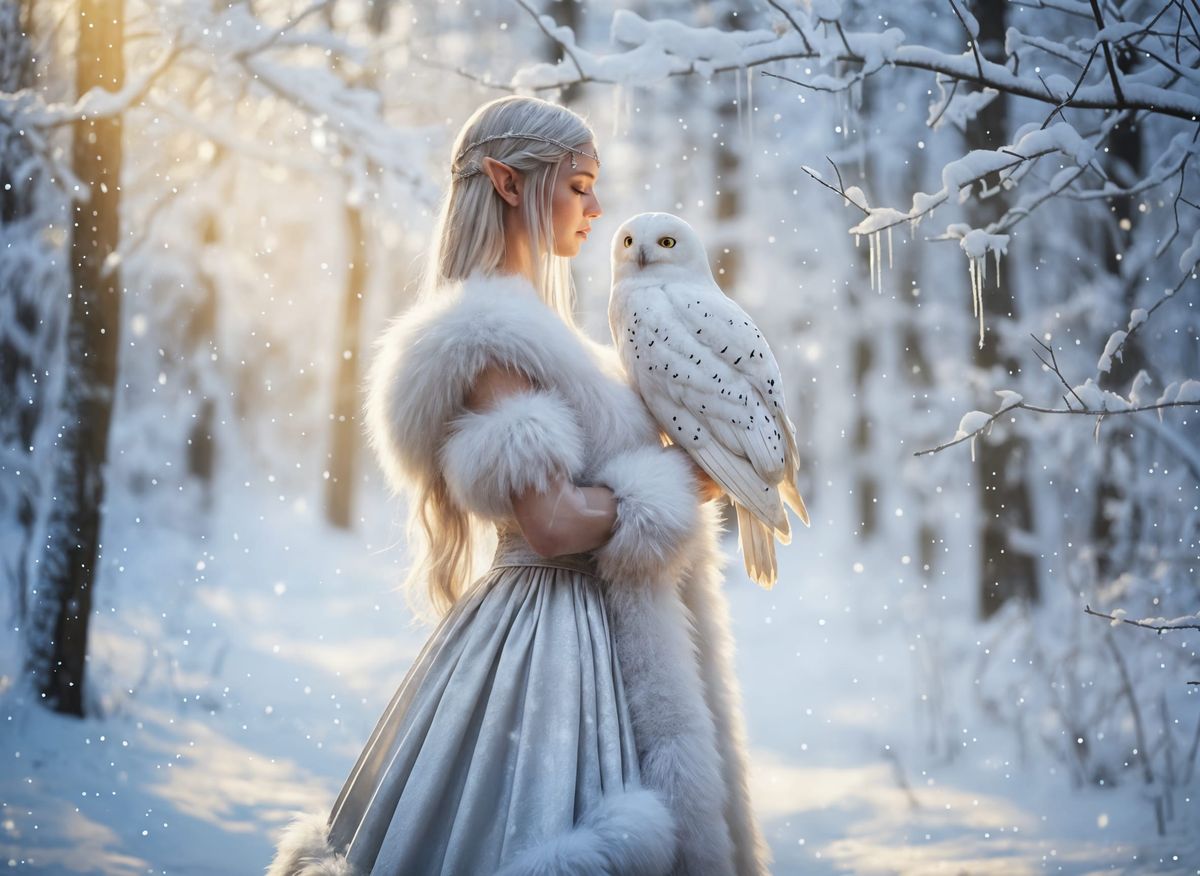 An elven princess with her owl friend โ out for a walk, or engaged in a discreet council? Wonderful work. Congratulations.